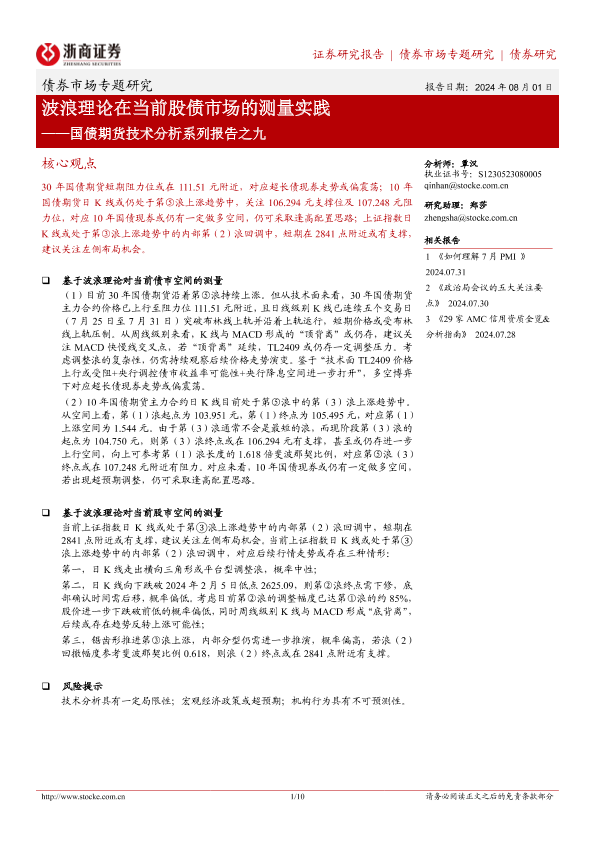 【浙商证券】【20240801】国债期货技术分析系列报告之九:波浪理论在当前股债市场的测量实践-10页