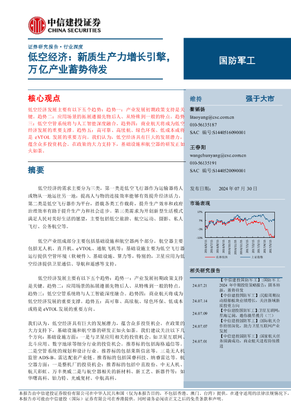 低空经济 国防军工 技术创新 政策支持 新兴产业