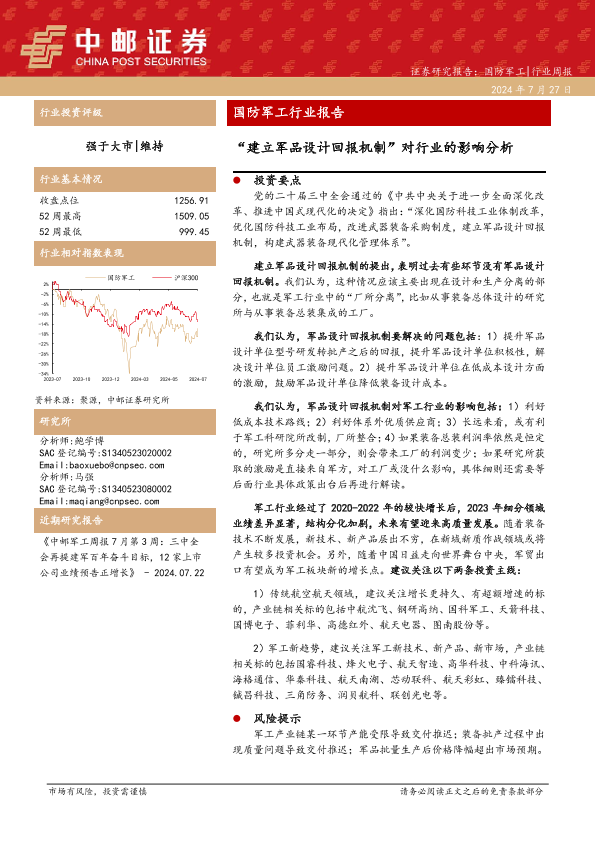 【中邮证券】【20240727】国防军工行业报告:“建立军品设计回报机制”对行业的影响分析-18页