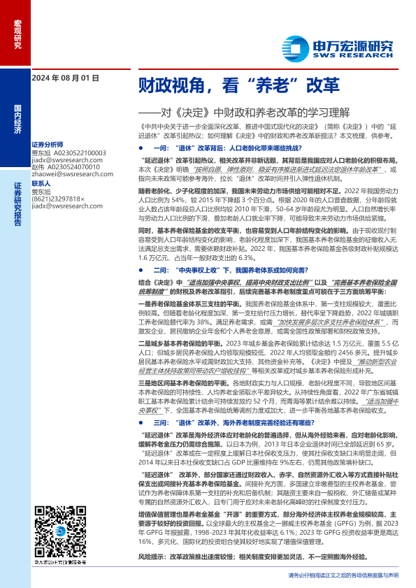 【申万宏源】【20240801】对《决定》中财政和养老改革的学习理解:财政视角,看“养老”改革-20页