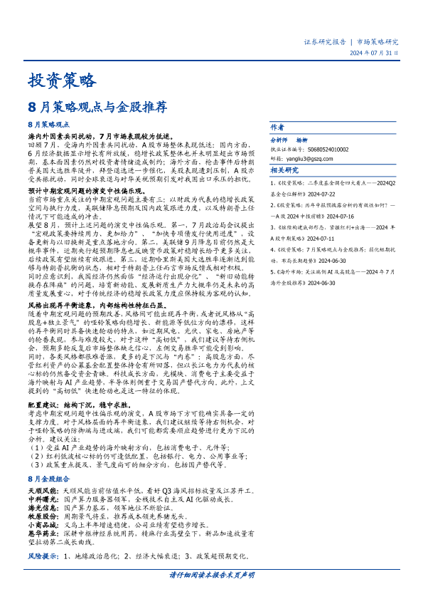 【国盛证券】【20240731】投资策略:8月策略观点与金股推荐-10页