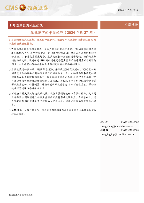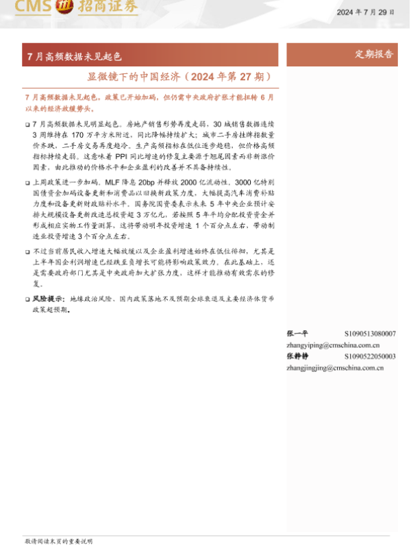 【海通证券】【20240729】显微镜下的中国经济(2024年第27期):7月高频数据未见起色-38页