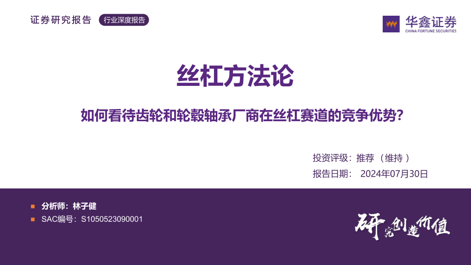 【华鑫证券】【20240730】汽车行业丝杠方法论:如何看待齿轮和轮毂轴承厂商在丝杠赛道的竞争优势?-47页