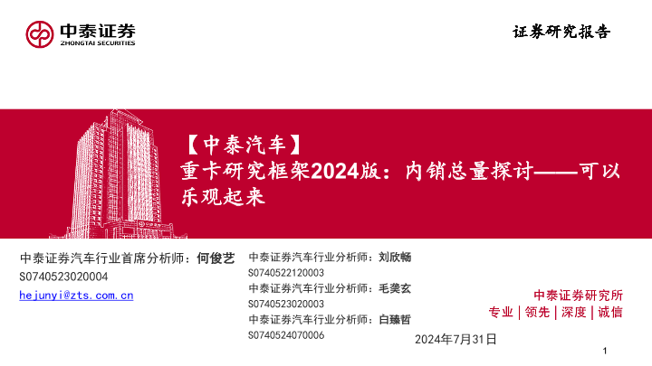 【中泰证券】【20240731】汽车行业重卡研究框架2024版:内销总量探讨,可以乐观起来-32页