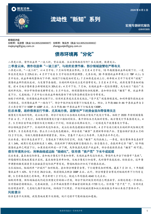 【国金证券】【20240801】流动性“新知”系列:债市环境再“分化”-15页