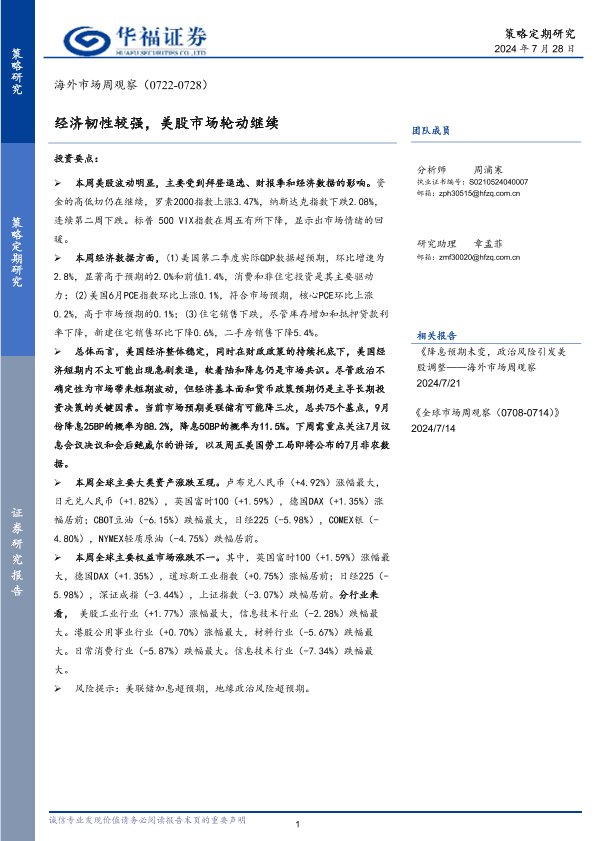 【华福证券】【20240728】海外市场周观察:经济韧性较强,美股市场轮动继续-18页