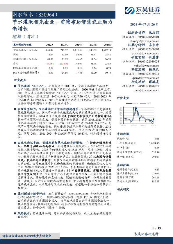 【东吴证券】【20240726】润农节水(830964)节水灌溉领先企业,前瞻布局智慧农业助力新增长-19页