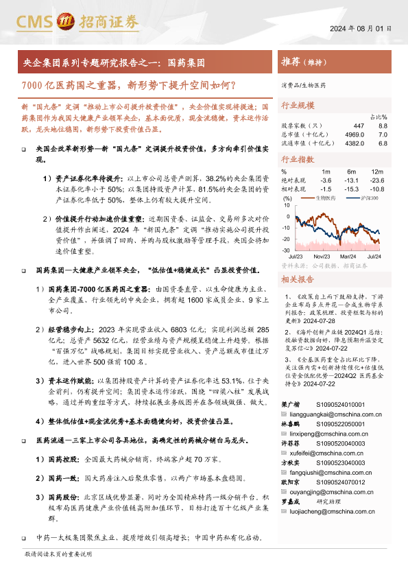 【海通证券】【20240801】生物医药行业央企集团系列专题研究报告之一-国药集团:7000亿医药国之重器,新形势下提升空间如何?-34页