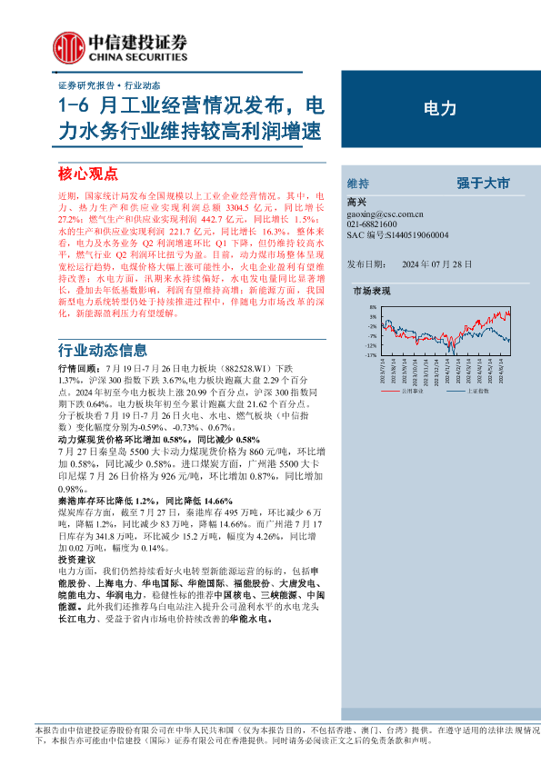 【中信建投证券】【20240728】电力行业:1-6月工业经营情况发布,电力水务行业维持较高利润增速-16页