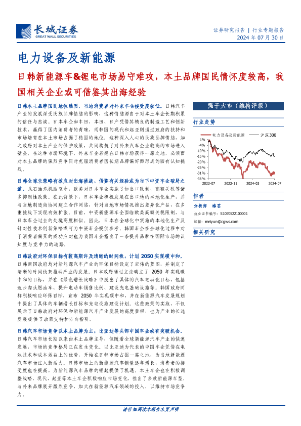 【长城证券】【20240730】电力设备及新能源行业专题报告:日韩新能源车&锂电市场易守难攻,本土品牌国民情怀度较高,我国相关企业或可借鉴其出海经验-24页