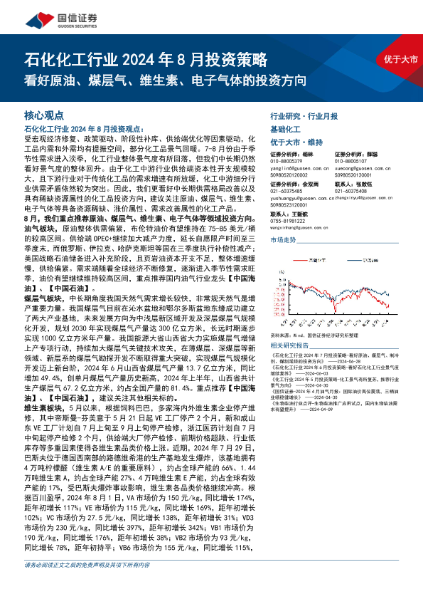 【国信证券】【20240801】石化化工行业2024年8月投资策略:看好原油、煤层气、维生素、电子气体的投资方向-28页