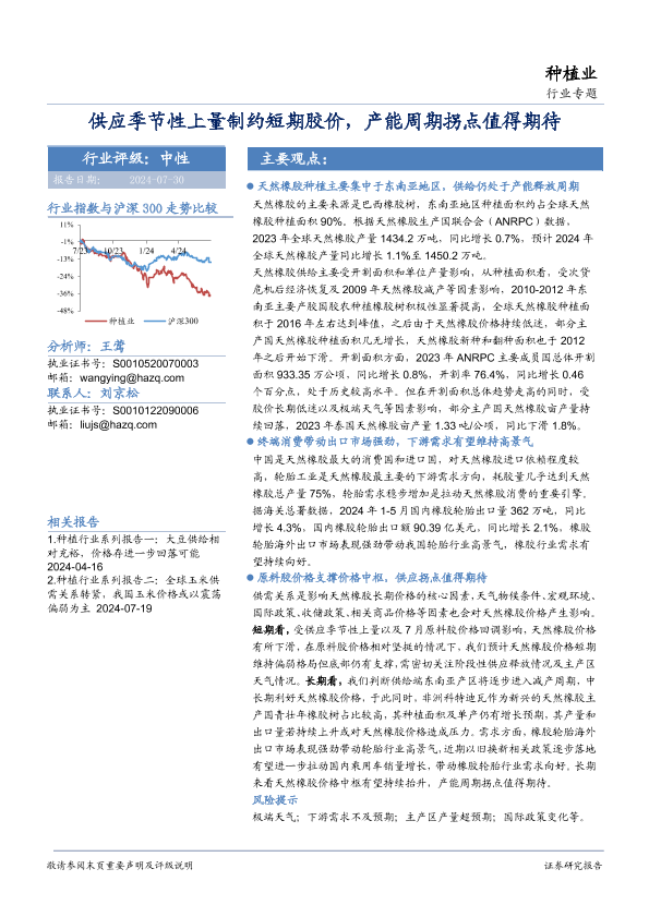 【华安证券】【20240730】供应季节性上量制约短期胶价,产能周期拐点值得期待-21页