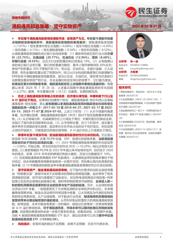 【民生证券】【20240801】策略专题研究-港股通高股息策略:坚守实物资产-15页
