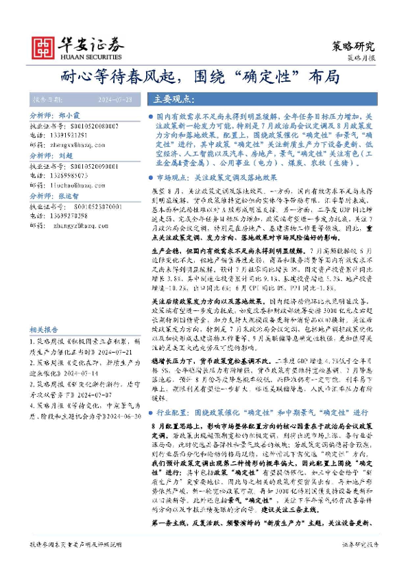 【华安证券】【20240728】策略研究:耐心等待春风起,围绕“确定性”布局-18页