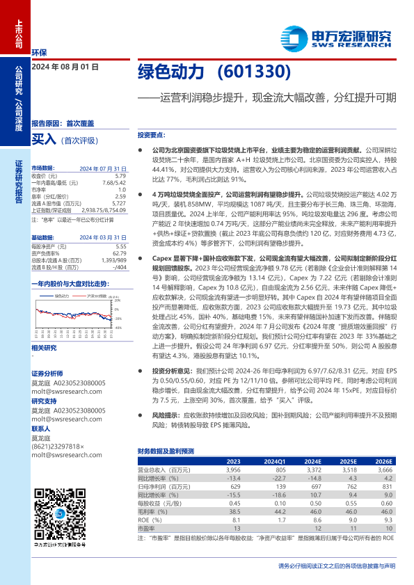 【申万宏源】【20240801】绿色动力(601330)运营利润稳步提升,现金流大幅改善,分红提升可期-17页