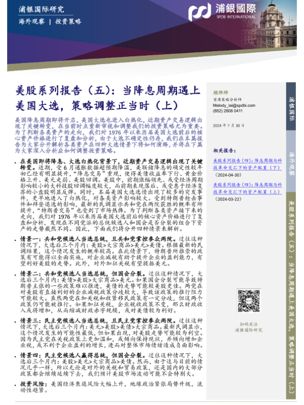 【浦银国际】【20240730】美股系列报告(五):当降息周期遇上美国大选,策略调整正当时(上)-16页