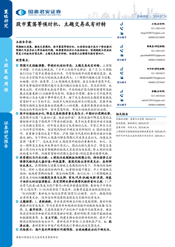 【国泰君安证券】【20240728】股市震荡等候时机,主题交易或有好转-21页