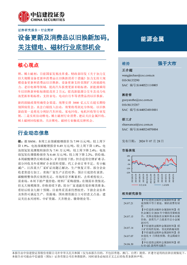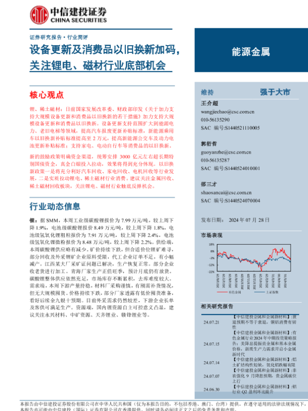 【中信建投证券】【20240728】能源金属行业:设备更新及消费品以旧换新加码,关注锂电、磁材行业底部机会-11页