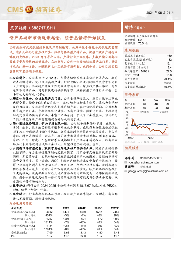 【海通证券】【20240801】艾罗能源(688717)新产品与新市场逐步起量,经营态势将开始恢复-26页