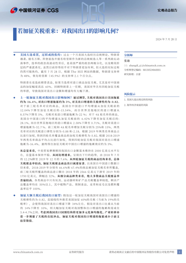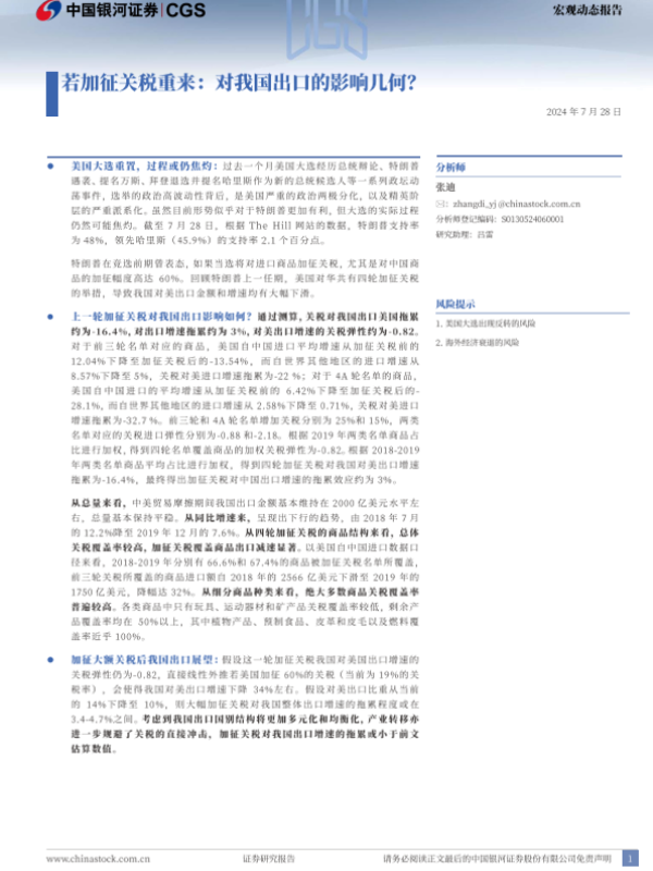 【银河证券】【20240728】若加征关税重来:对我国出口的影响几何?-12页