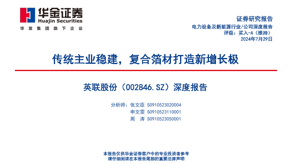 【华金证券】【20240729】英联股份(002846)深度报告:传统主业稳建,复合箔材打造新增长极-53页
