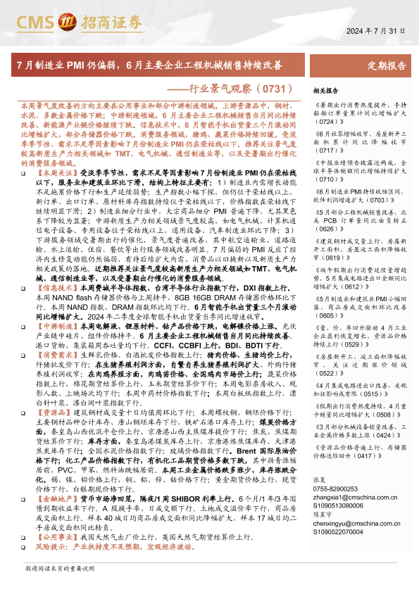 【海通证券】【20240731】行业景气观察:7月制造业PMI仍偏弱,6月主要企业工程机械销售持续改善-33页