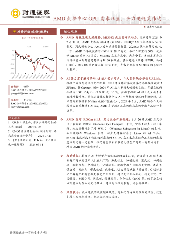 【财通证券】【20240731】计算机行业专题报告:AMD数据中心GPU需求旺盛,全力追赶英伟达-14页
