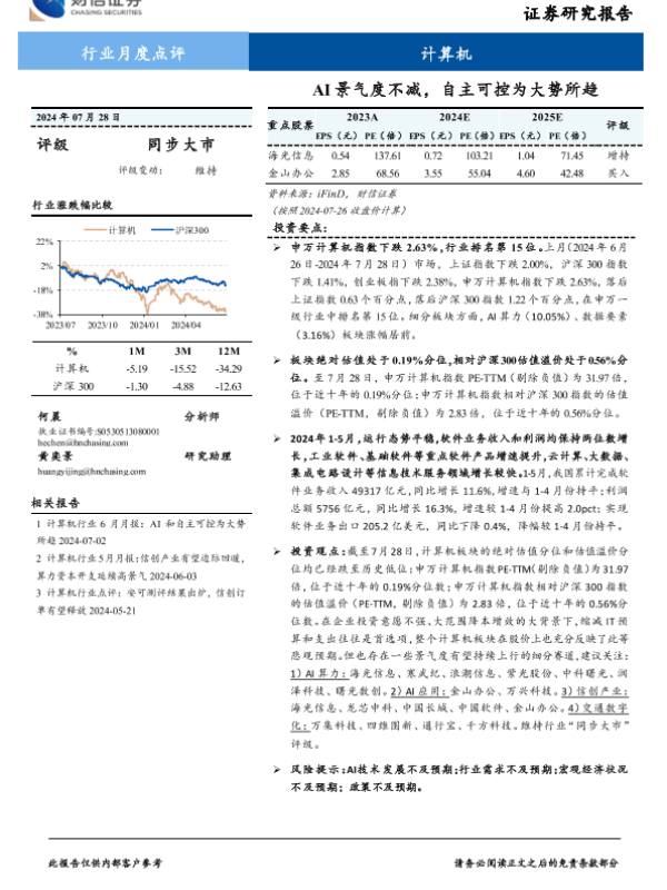 【财信证券】【20240728】计算机行业月度点评:AI景气度不减,自主可控为大势所趋-12页