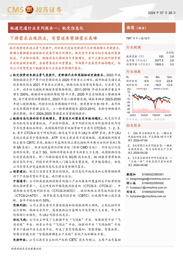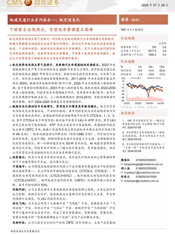 【海通证券】【20240728】轨道交通行业系列报告一-轨交信息化:下游需求出现拐点,有望迎来替换需求高峰-41页