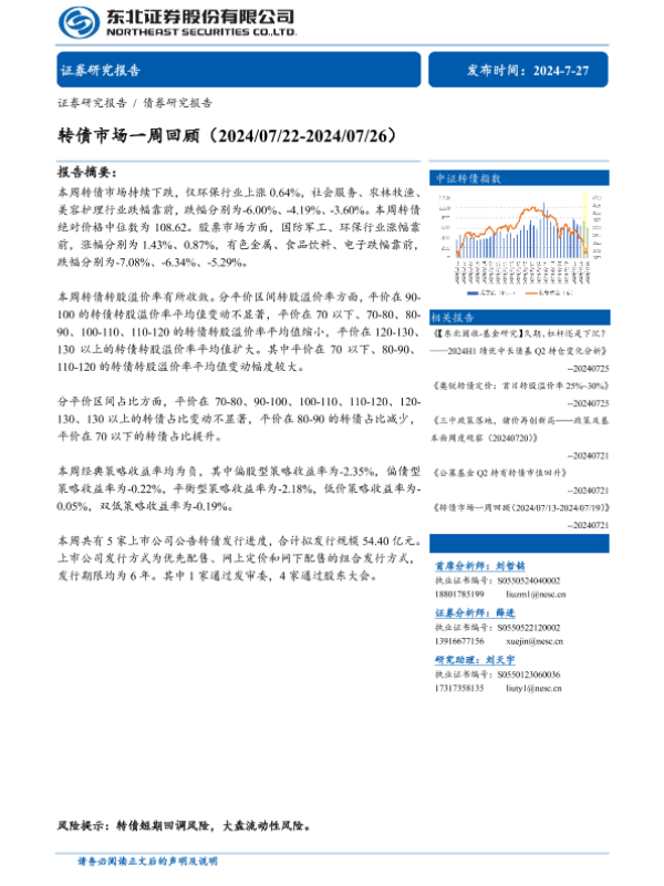 【东北证券】【20240727】转债市场一周回顾(2024/07/22-2024/07/26)-12页
