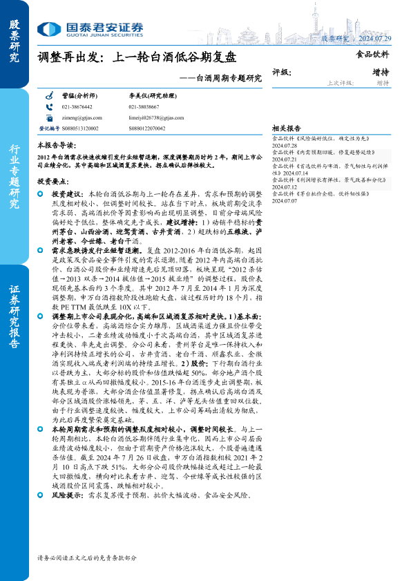 【国泰君安证券】【20240729】食品饮料行业白酒周期专题研究:调整再出发,上一轮白酒低谷期复盘-16页