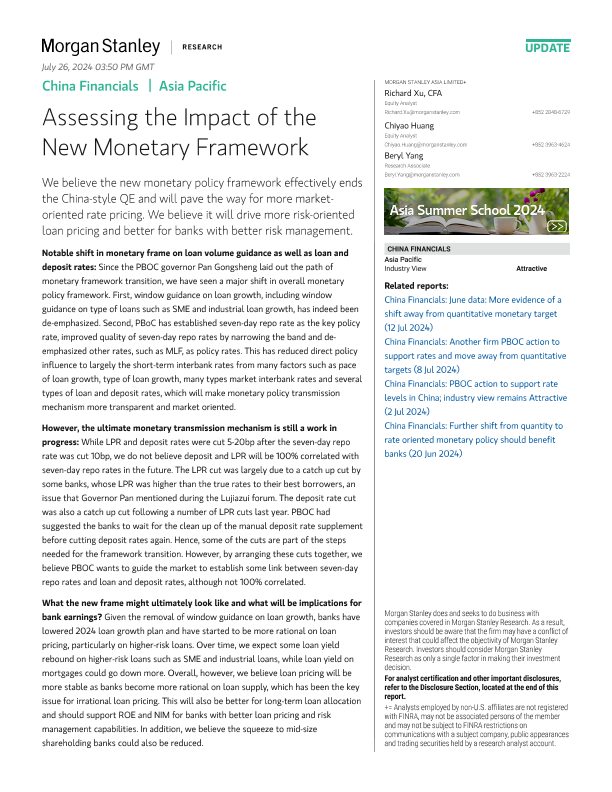 【Morgan Stanley】【20240712】中国金融:评估新货币框架的影响-16页