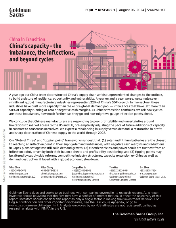 【Goldman Sachs】【20240806】中国的超强产能和制造能力如何影响世界-34页