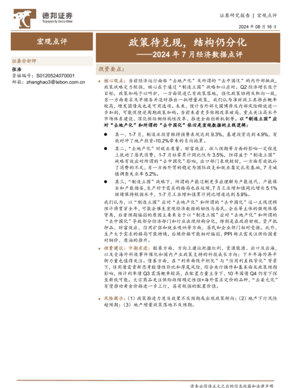 【德邦证券】【20240816】2024年7月经济数据点评:政策待兑现,结构仍分化-21页