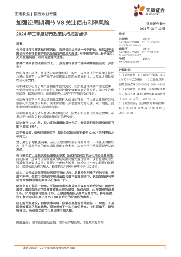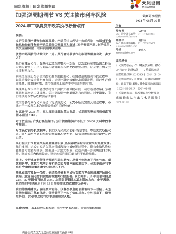 【天风证券】【20240810】2024年二季度货币政策执行报告点评:加强逆周期调节VS关注债市利率风险-12页