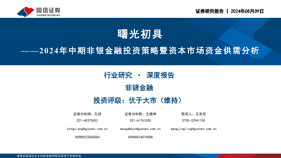 【国信证券】【20240809】2024年中期非银金融投资策略暨资本市场资金供需分析:曙光初具-88页