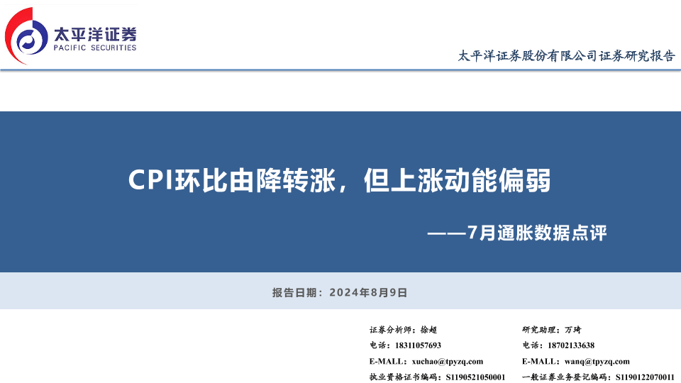 【太平洋证券】【20240809】7月通胀数据点评:CPI环比由降转涨,但上涨动能偏弱-14页