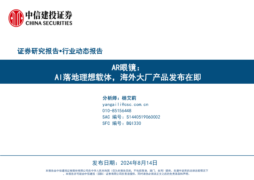【中信建投证券】【20240814】AR眼镜行业动态报告:AI落地理想载体,海外大厂产品发布在即-43页