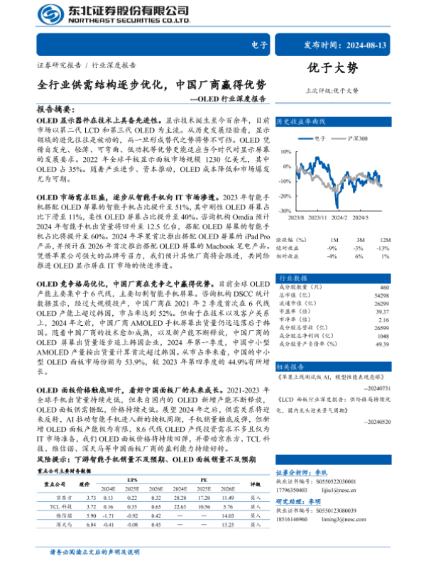 【东北证券】【20240813】OLED行业深度报告:全行业供需结构逐步优化,中国厂商赢得优势-68页