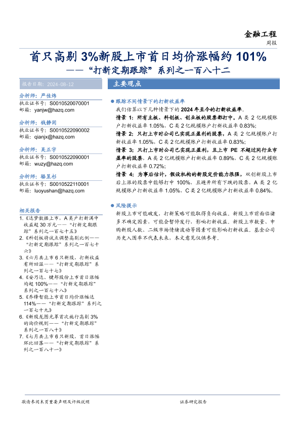 【华安证券】【20240812】“打新定期跟踪”系列之一百八十二:首只高剔3%新股上市首日均价涨幅约101%-16页