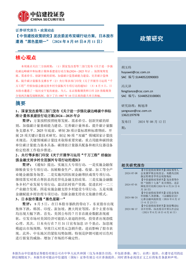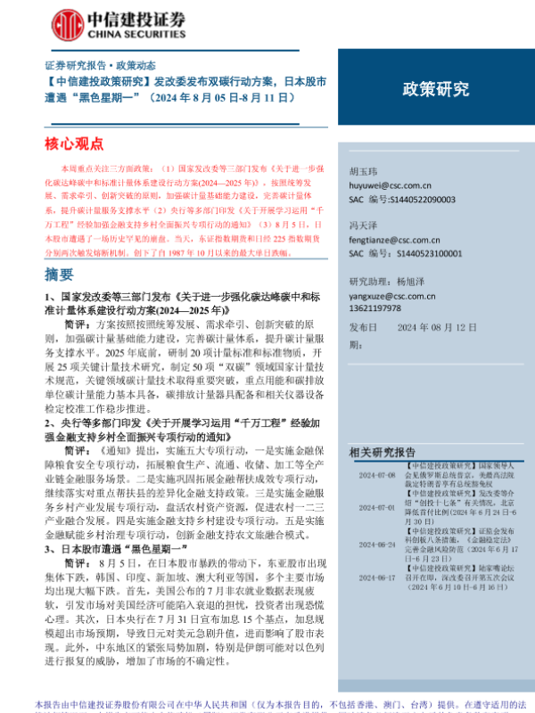 【中信建投证券】【20240812】发改委发布双碳行动方案,日本股市遭遇“黑色星期一”-16页