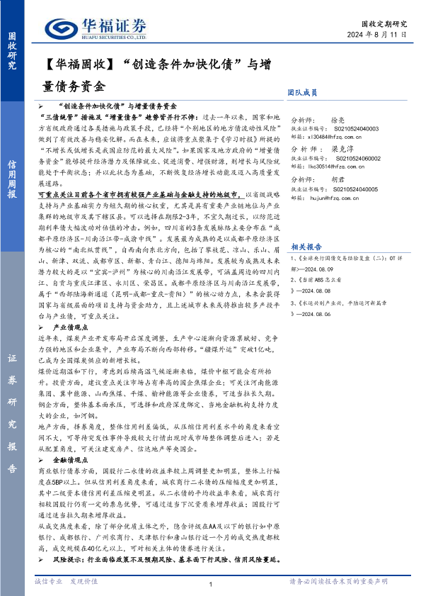 【华福证券】【20240811】“创造条件加快化债”与增量债务资金-20页