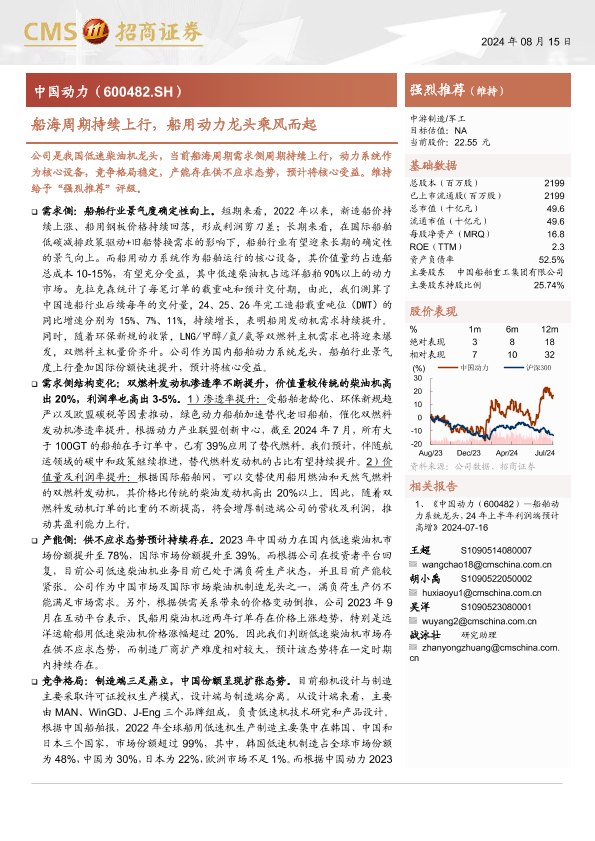 【海通证券】【20240815】中国动力(600482)船海周期持续上行,船用动力龙头乘风而起-37页