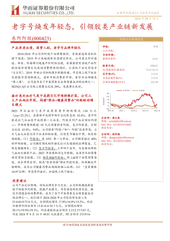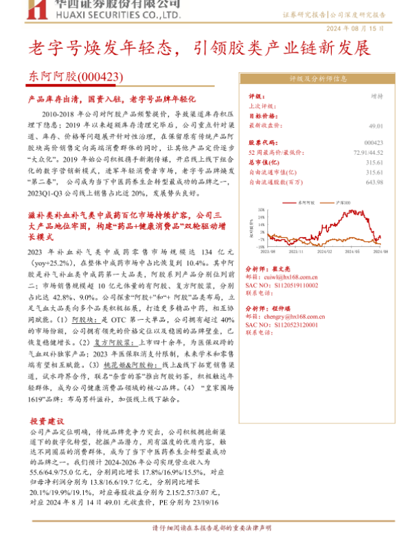 【华西证券】【20240815】东阿阿胶(000423)老字号焕发年轻态,引领胶类产业链新发展-26页