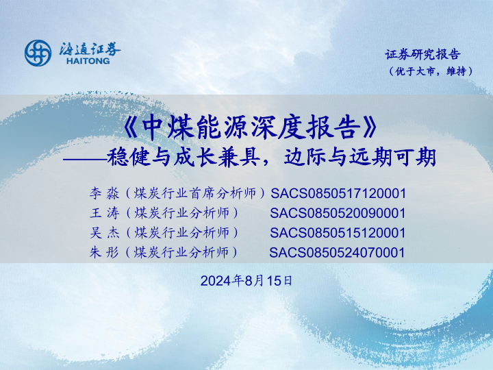 【海通证券】【20240815】中煤能源(601898)深度报告:稳健与成长兼具,边际与远期可期-24页