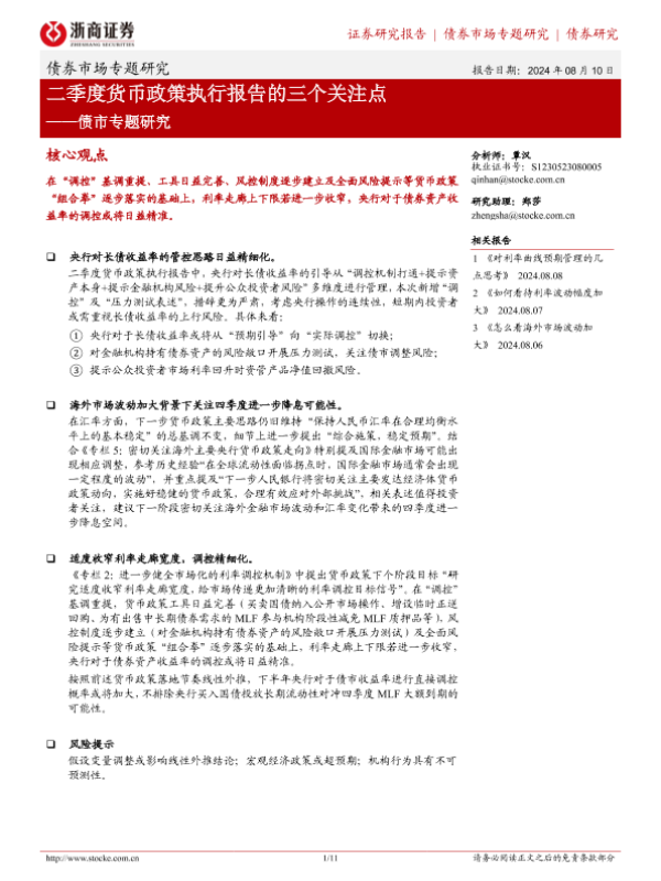 【浙商证券】【20240810】二季度货币政策执行报告的三个关注点——债市专题研究-11页