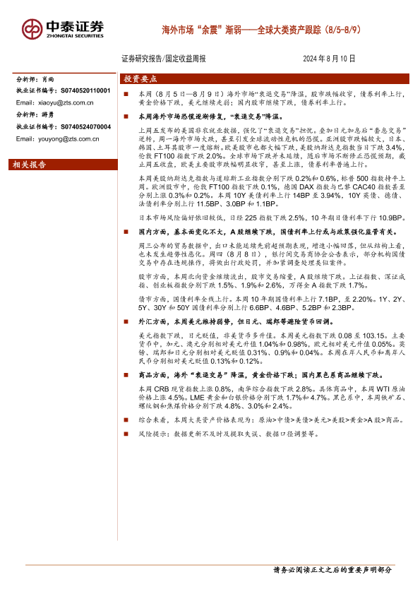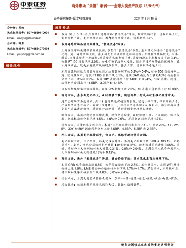【中泰证券】【20240810】全球大类资产跟踪:海外市场“余震”渐弱-13页