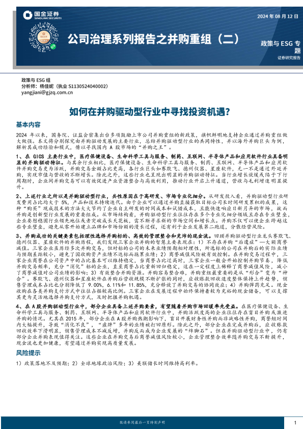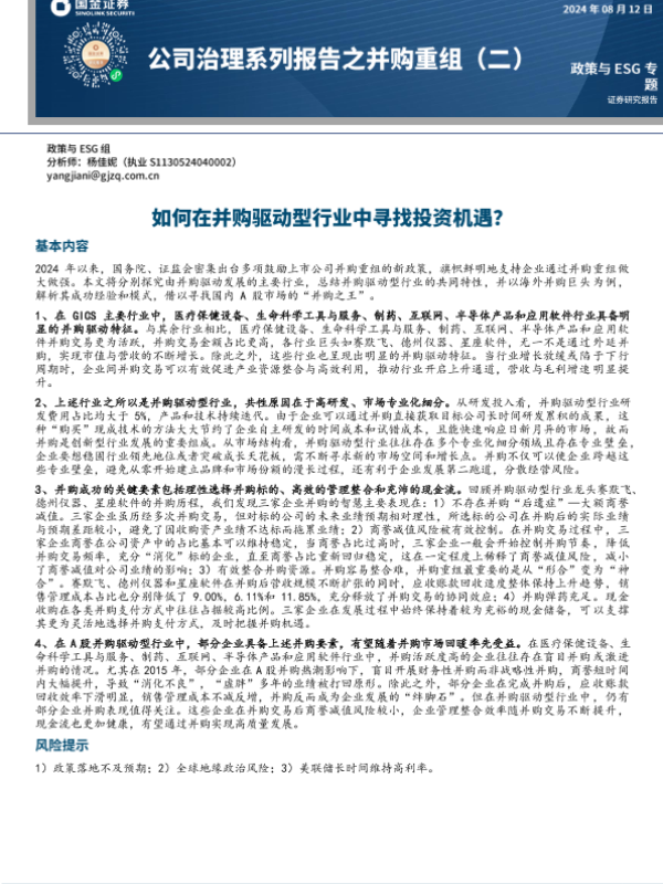 【国金证券】【20240812】公司治理系列报告之并购重组(二):如何在并购驱动型行业中寻找投资机遇?-27页