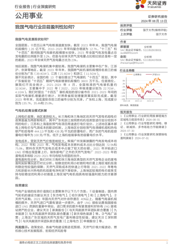 【天风证券】【20240813】公用事业行业深度研究:我国气电行业目前盈利性如何?-18页