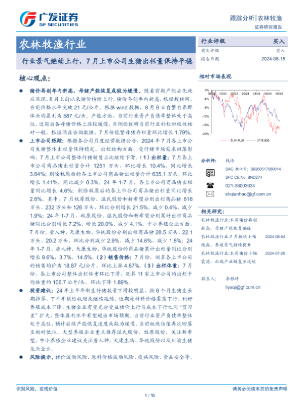 【广发证券】【20240815】农林牧渔行业:行业景气继续上行,7月上市公司生猪出栏量保持平稳-10页